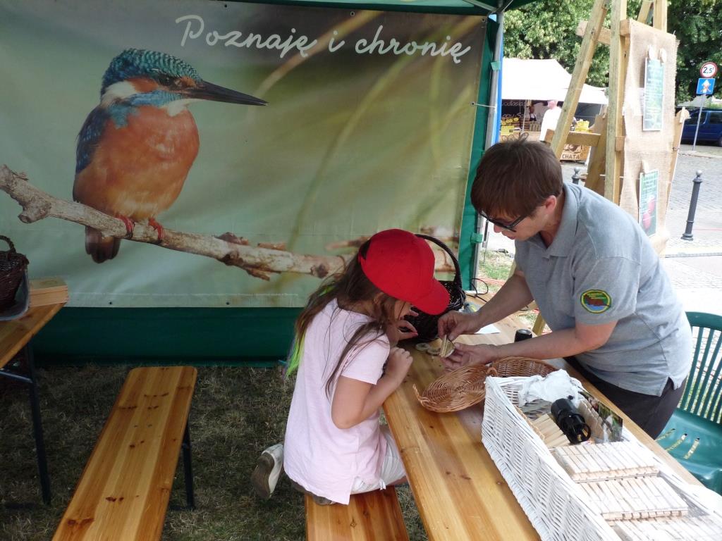 Na stoisku Drawieńskiego Parku Narodowego można było także zdobyć pamiątkowe pieczątki w bardzo oryginalny sposób. W tym celu Pani Ewa przygotowała drewniane tarczki, klamerki i klej. Na traczkach najpierw należało odbić wybraną pieczątkę, a następnie skleić całość z drewnianą klamerką.
